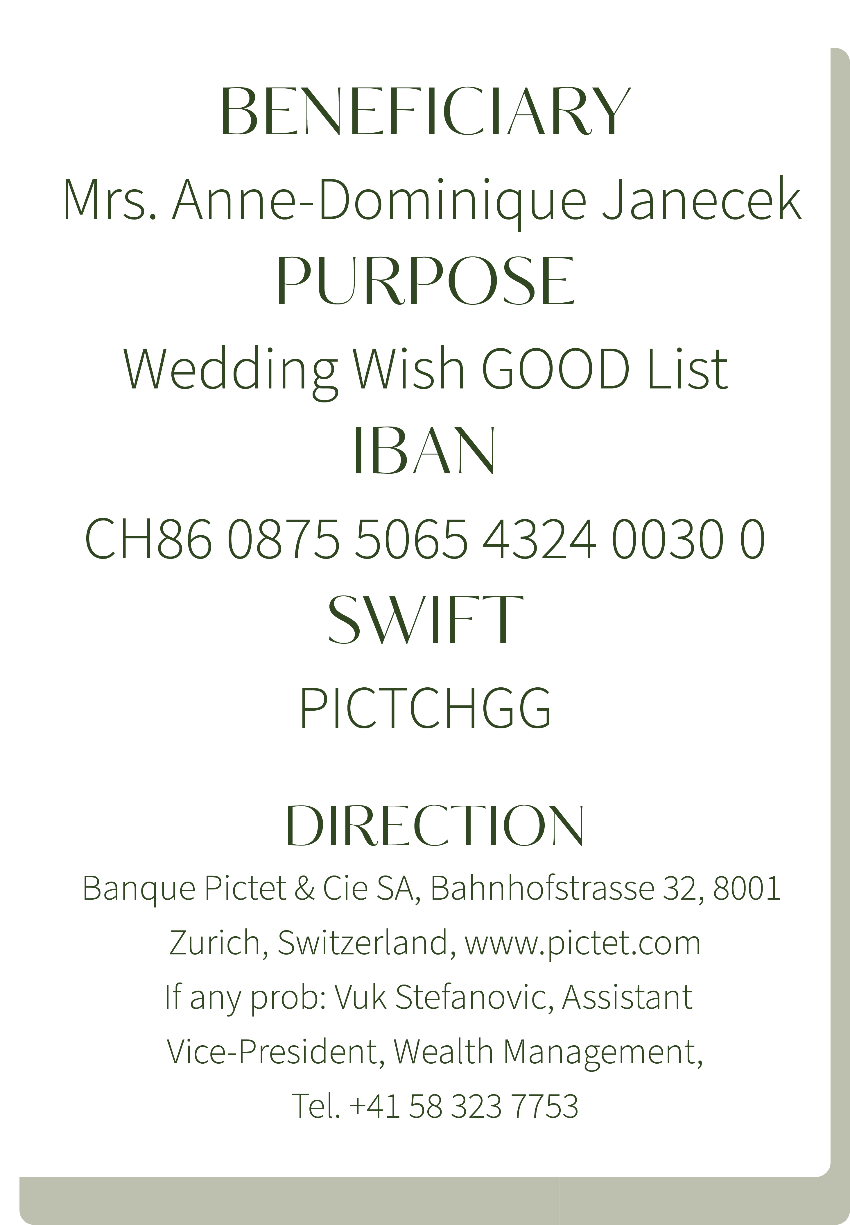 No podemos agradecerles lo suficiente su amor y presencia, este es el regalo más preciado para nosotros. Sin obligaciones pero por demanda popular, por favor encuentre nuestras sugerencias de Regalos